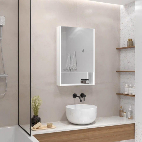- Корпус из влагостойкого ЛДСП и полки из закалённого стекла, устойчивые к повышенной влажности .