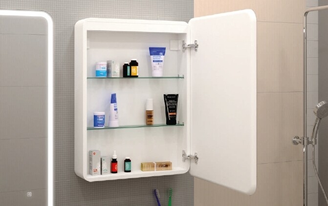 Настенный зеркальный шкафчик идеально сэкономит место в ванной комнате. Наличие полочек позволит разместить все ванные принадлежности. В комплектацию входит встроенная LED-подсветка, которая обеспечит мягкое и ровное свечение по периметру всего изделия, и сенсорный выключатель с диммером, который позволит включить и отрегулировать яркость подсветки в одно касание. Большим преимуществом также является влагостойкий корпус, розетка для электроприборов (снаружи, с левой стороны), фурнитура с доводчиком для плавного закрывания двери. Правостороннее открытие фасада. Потребляемая мощность 26 W. Под заказ можем изготовить левостороннее открытие фасада.