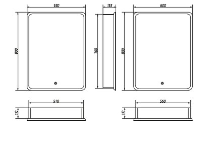 | Оснащение | Светильник LED (LED лента), блок питания; сенсорный выключатель, розетка крепление зеркала (кронштей |