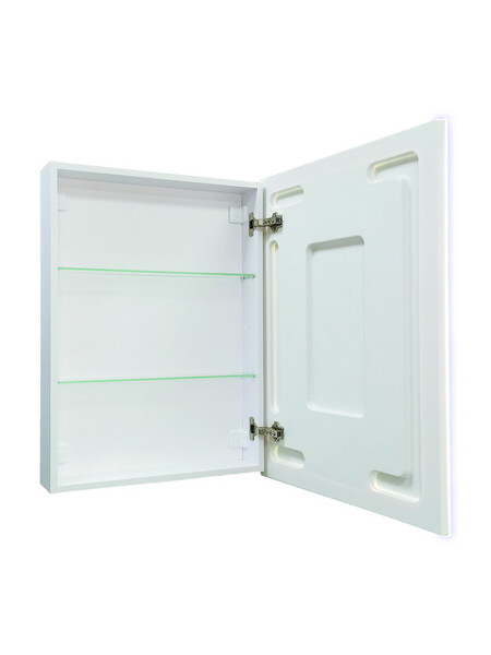 Настенный зеркальный шкафчик "Reflex LED" идеально сэкономит место в ванной комнате. Наличие полочек позволит разместить все свои ванные принадлежности. В комплектацию входит встроенная LED-подсветка, которая обеспечит мягкое и ровное свечение по периметру всего изделия. Большим преимуществом также является влагостойкий корпус, реверсивные дверцы (левую и правую сторону можно менять местами), фурнитура с доводчиком для плавного закрывания двери, пластиковый фасад. Короб шкафа и зеркало имеют прямые углы. Потребляемая мощность 30 W.